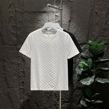 Verano a cuadros de manga corta para hombre ligero temperamento de lujo Color sólido Casual versátil cuello redondo Camiseta Tops