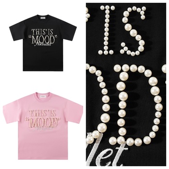 Nueva Camiseta de manga corta con cuentas American Pearl, algodón pesado, ajuste holgado, camiseta para hombre
