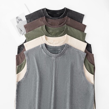Chaleco sin mangas de Estilo Vintage al por mayor 100% algodón holgado ropa de gimnasio deportes acanalado camiseta sin mangas transpirable informal camiseta sin mangas de verano