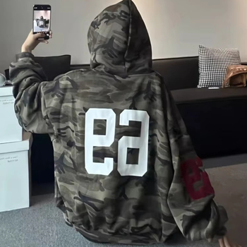 Fabricante personalizado Hoddie Hombre Dtg impreso algodón francés Terry Zip up camuflaje lavado ácido desgastado Sudadera con capucha hombres