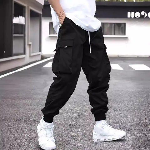 2025 verano hombres Casual Cargo Joggers pantalones de moda de pierna recta Pantalones deportivos XL tamaño suelto ajuste antiarrugas tejido plisado